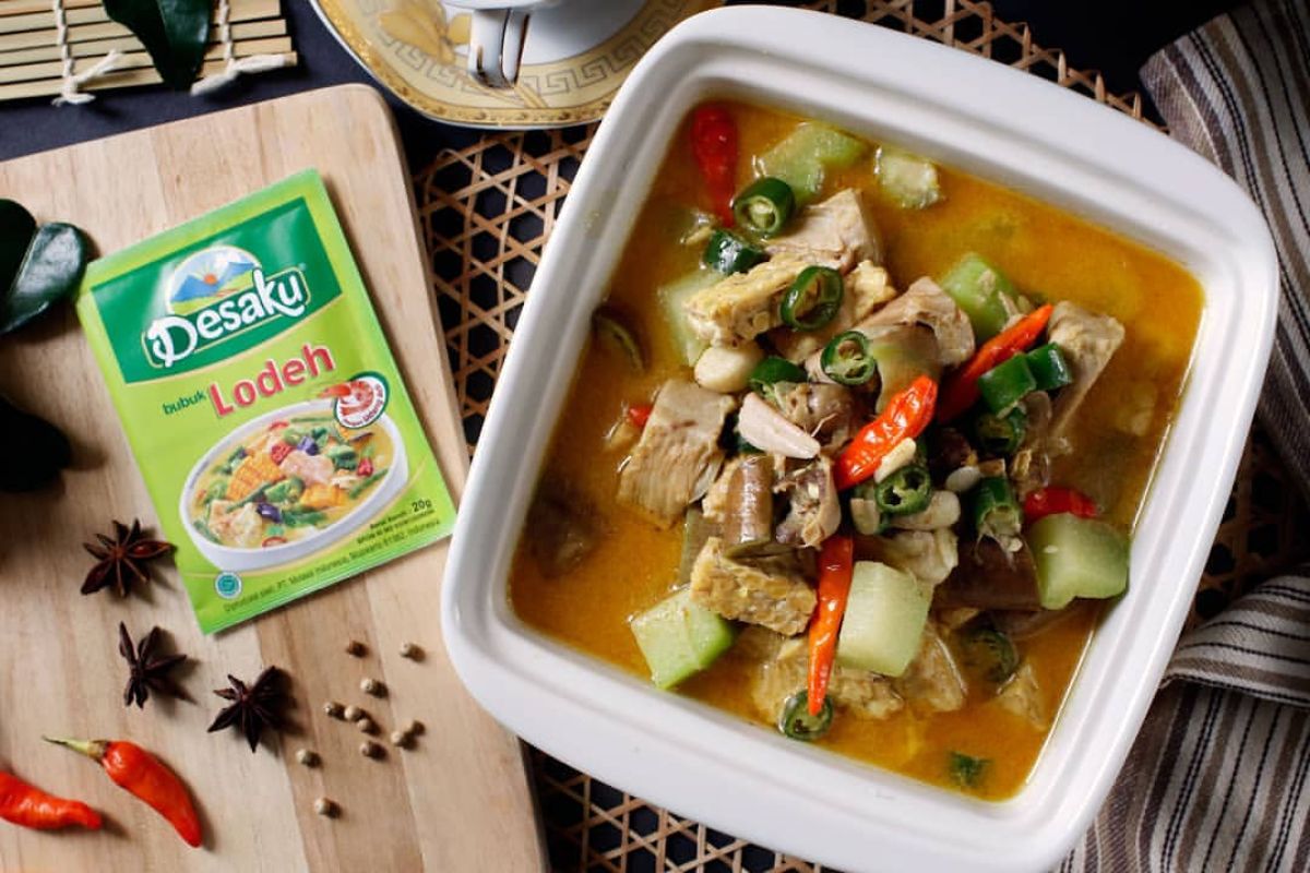 - Tuangkan santan encer ke dalam wajan dan tambahkan Desaku Bubuk Lodeh, garam, serta gula. Aduk perlahan hingga mendidih dan semua bumbu larut dengan baik.