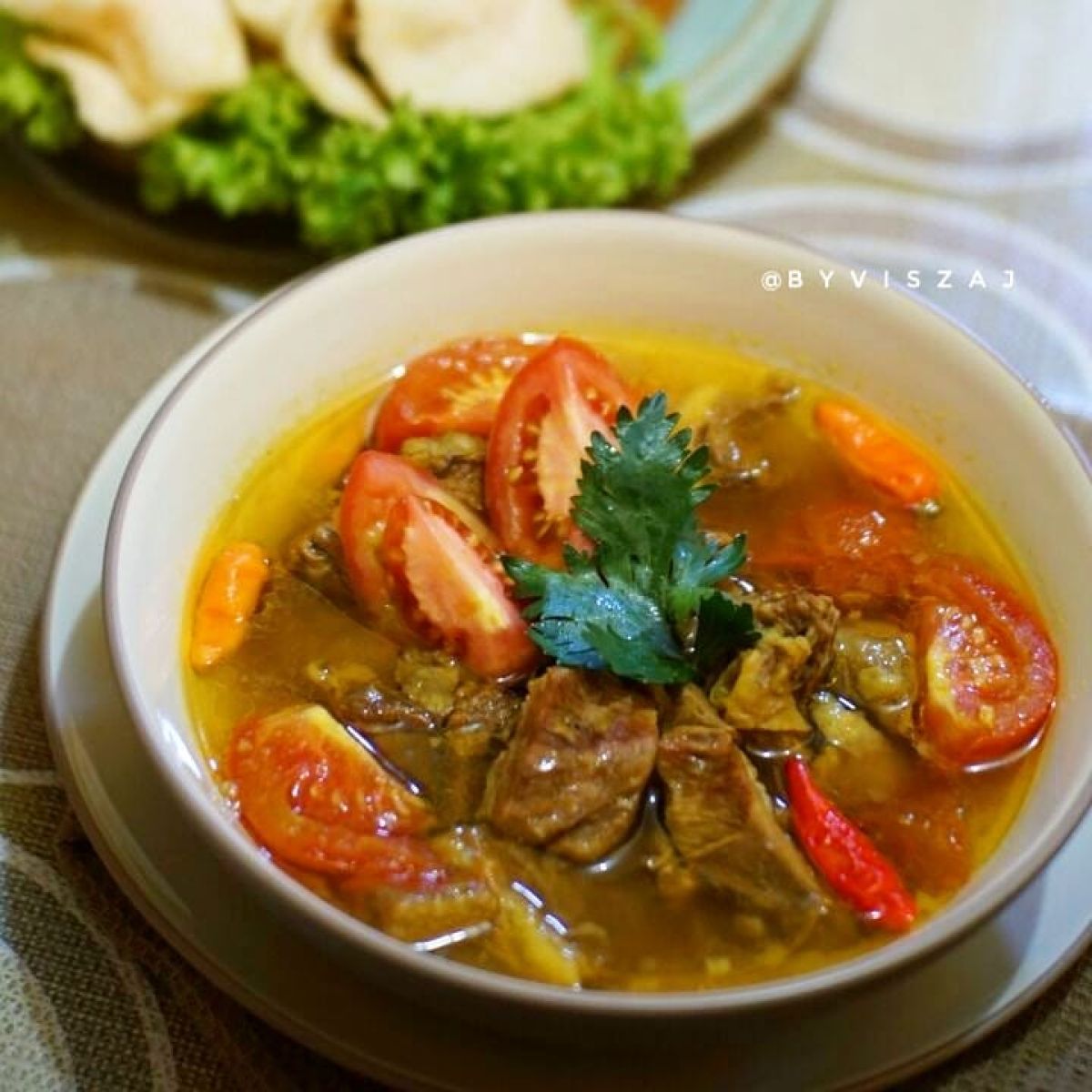 Hidangkan Pindang Daging Sapi dengan nasi putih hangat. Selamat menikmati!