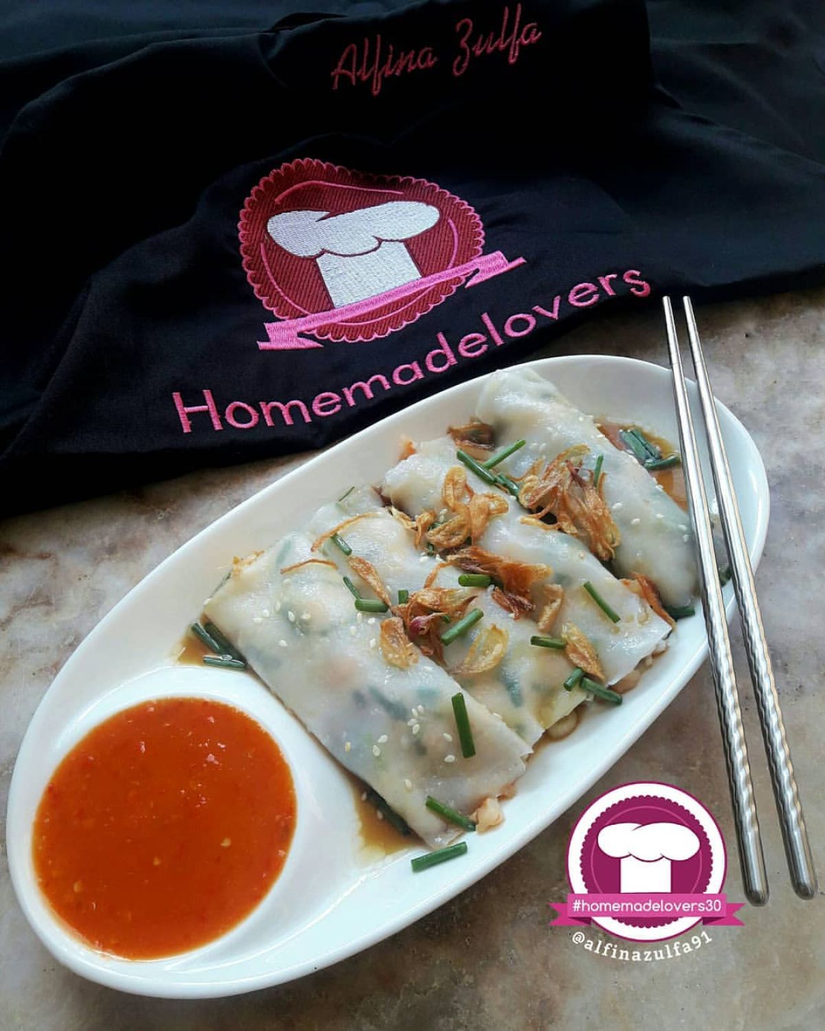 - Sajikan chee cheong fan dengan taburan daun bawang, wijen, dan bawang goreng. Tuangkan saus di atasnya dan nikmati dengan sambal.