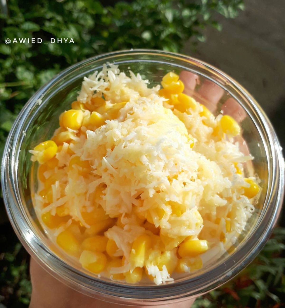- Terakhir, taburkan keju parut di atas campuran jagung dan susu. Aduk lagi sampai keju tercampur rata.