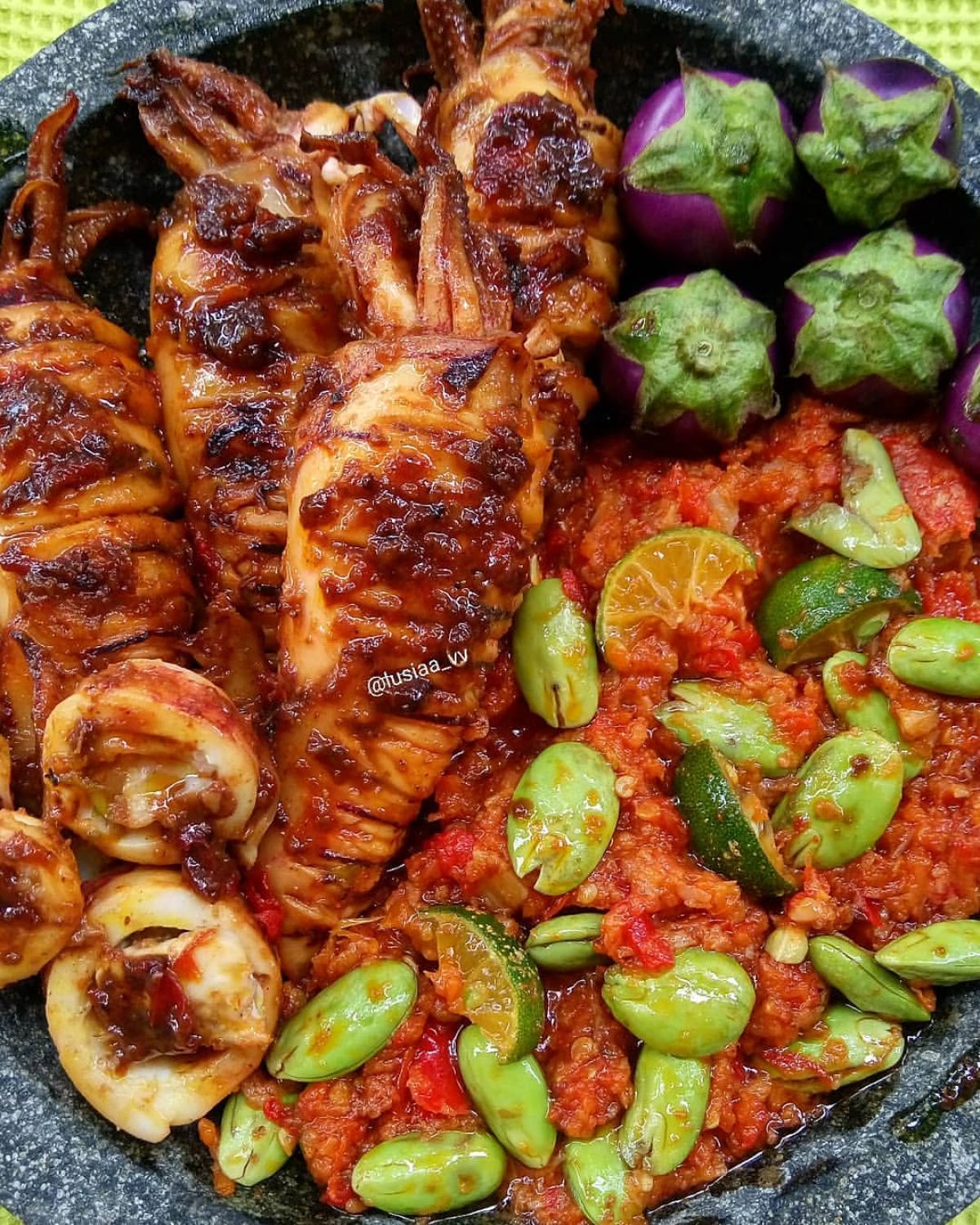 - Sajikan cumi bakar hangat-hangat dengan sambal dan lalapan.