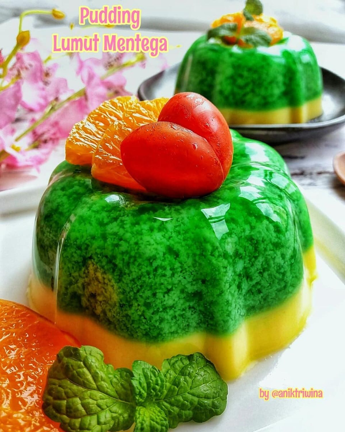 Puding Lumut Mentega adalah pencuci mulut yang sangat populer di Indonesia. Puding ini memiliki tampilan yang unik dengan tekstur yang lembut dan rasa yang kaya, terutama saat disajikan dingin. Pudding ini sering dijadikan hidangan saat berbuka puasa atau acara keluarga. Mari kita buat puding lumut mentega yang lezat ini!