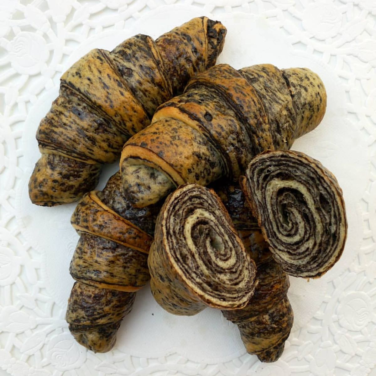 - Giling adonan hingga selebar 54x22 cm. Ukur dan potong menjadi segitiga dengan ukuran 9x22 cm. Gulung dari sisi yang lebar ke yang lancip.
