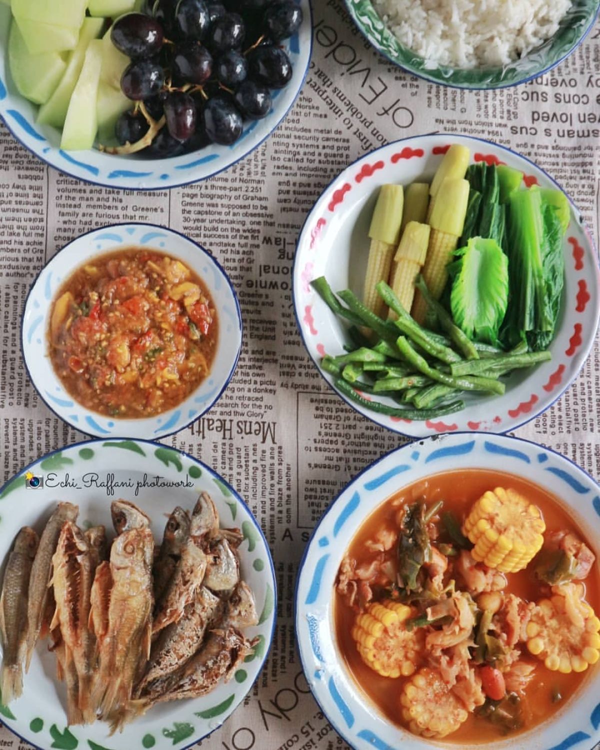 Sambal Mangga menambah cita rasa pedas yang segar dan khas, menciptakan keseimbangan rasa yang sempurna. Lalapan adalah sayuran rebus yang biasanya disajikan di samping hidangan utama, memberikan tambahan nutrisi dan kelezatan. Buah-buahan seperti melon dan anggur sering disajikan sebagai pencuci mulut yang kaya vitamin dan enak.