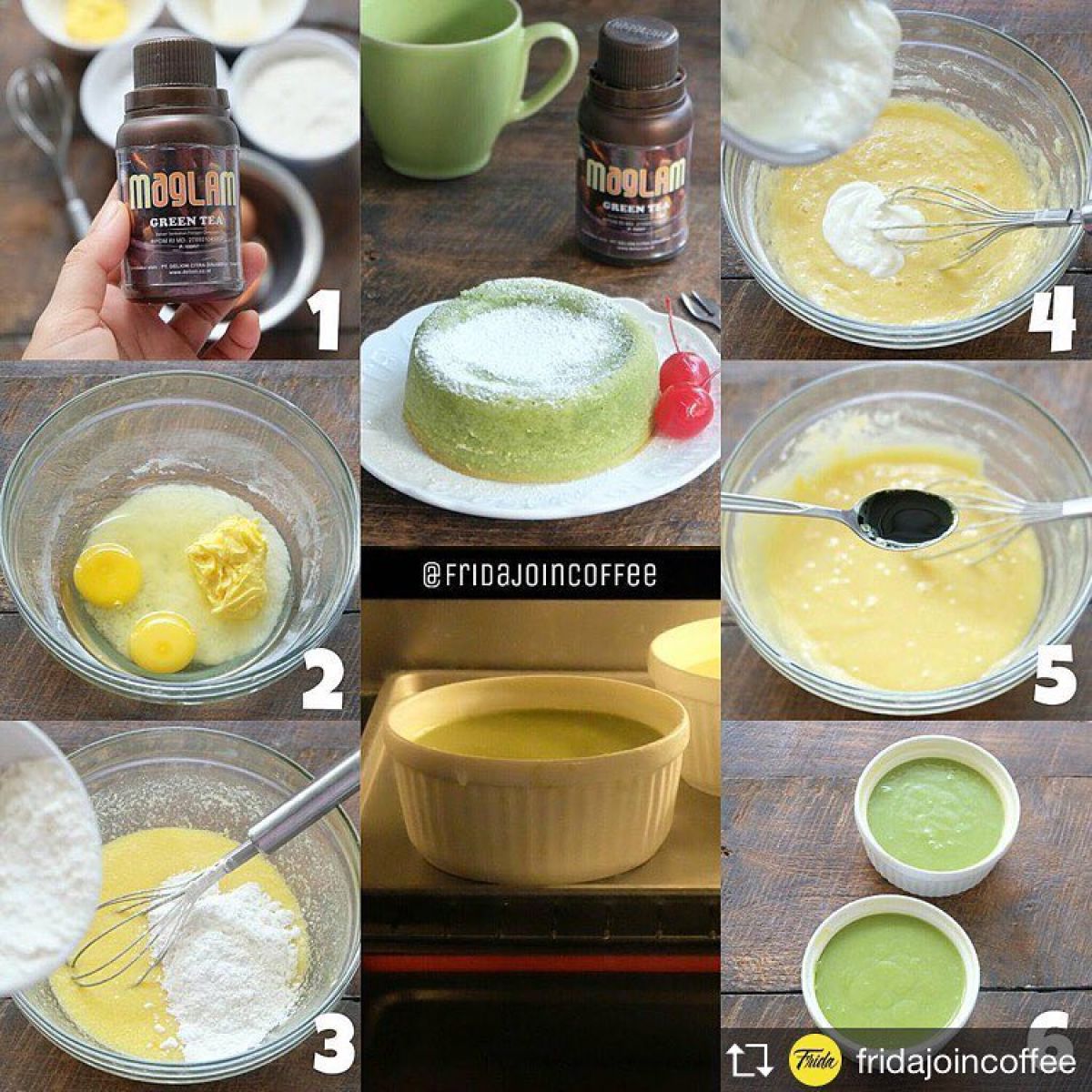 - Tambahkan Maglam Green Tea ke dalam adonan. Aduk lagi hingga rata. Green Tea memberikan rasa yang khas dan aroma yang harum.
