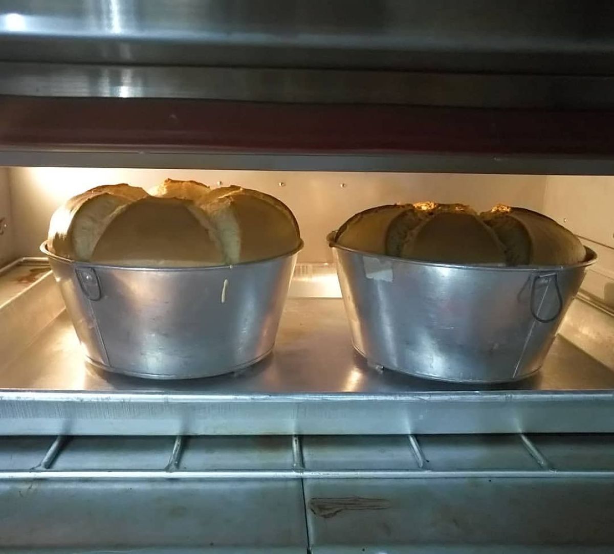 Jika ingin memberikan bentuk guratan pada kue, pada 15 menit pertama memanggang bisa digurat menggunakan pisau dan kemudian lanjutkan memanggang pada suhu 180°C hingga matang selama sekitar 60 menit.