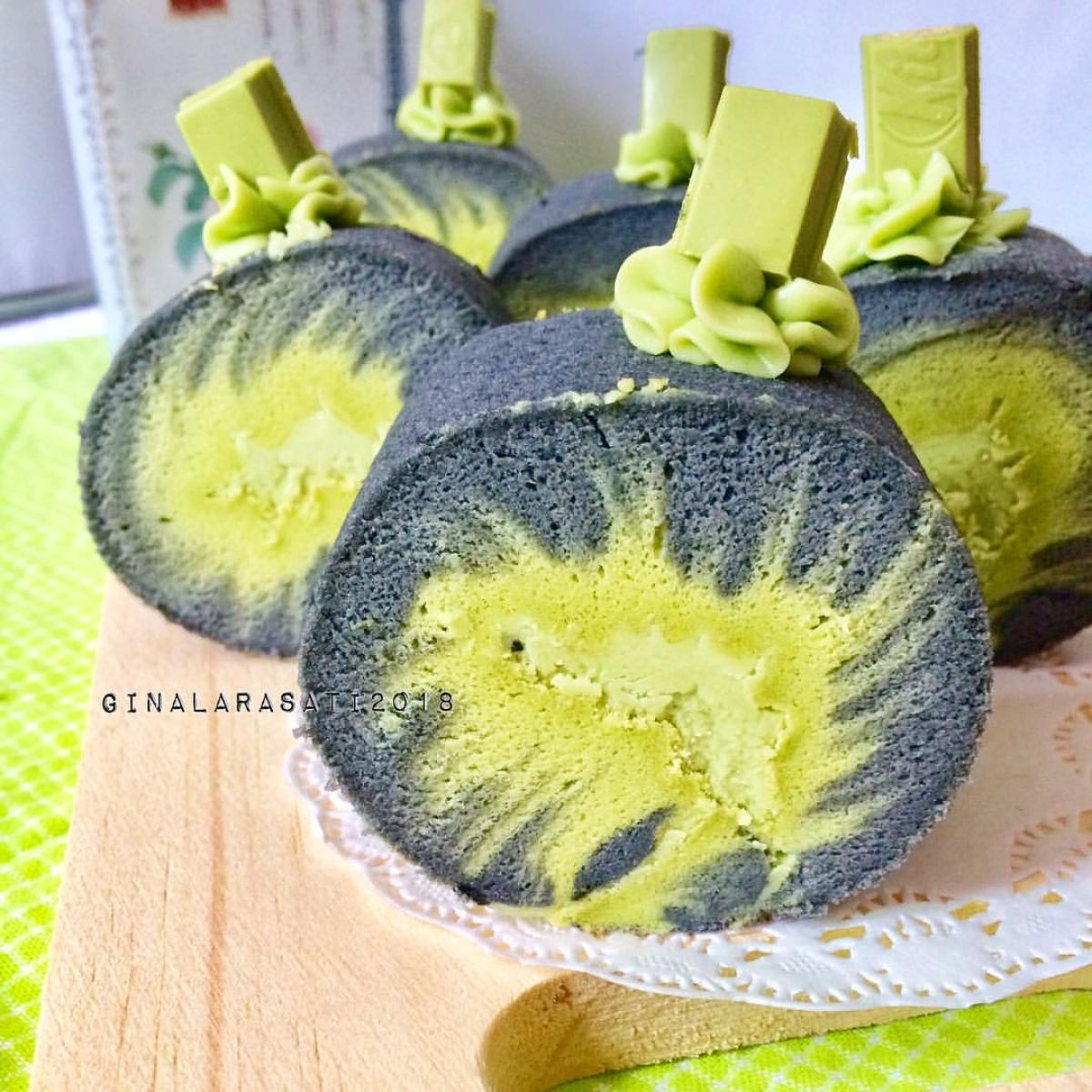 Kue ini merupakan variasi dari Swiss Roll, yang memiliki asal-usul dari Eropa. Swiss Roll, atau kue gulung, terkenal dengan isian yang beragam, biasanya menggunakan krim atau selai. Sekarang, dengan penambahan charcoal dan green tea, kue ini memiliki sentuhan Asia yang modern. Charcoal Powder dikenal karena manfaat kesehatan, sedangkan greentea memberikan aroma yang segar dan khas. Kue ini sering disajikan pada acara spesial, dan sangat populer di kalangan penggemar kue.