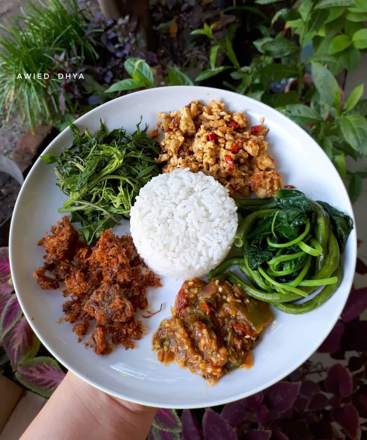 - Hidangkan: Sajikan telur orak-arik, ikan pepes, lalapan, sambal, dan kerupuk dalam satu piring. Selamat menikmati!
