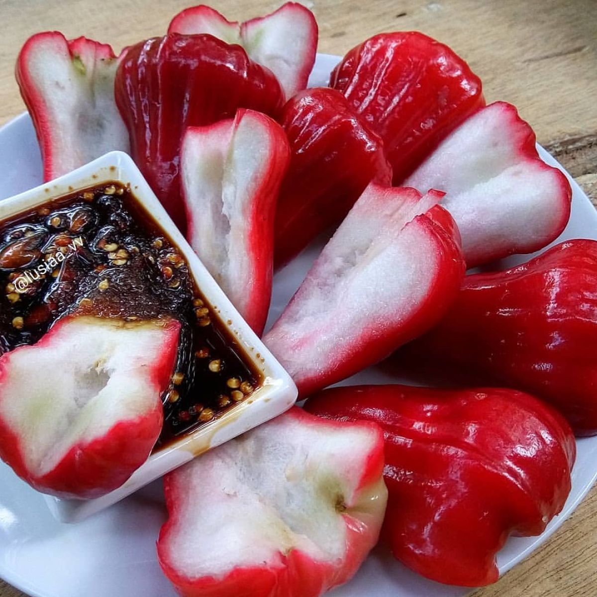 4. Sajikan: Tempatkan potongan jambu merah dalam mangkuk saji dan nikmati segera. Jika mau, kamu bisa menambahkan es batu agar lebih segar. Ini adalah cemilan yang cocok untuk menemani waktu bersantai di sore hari.