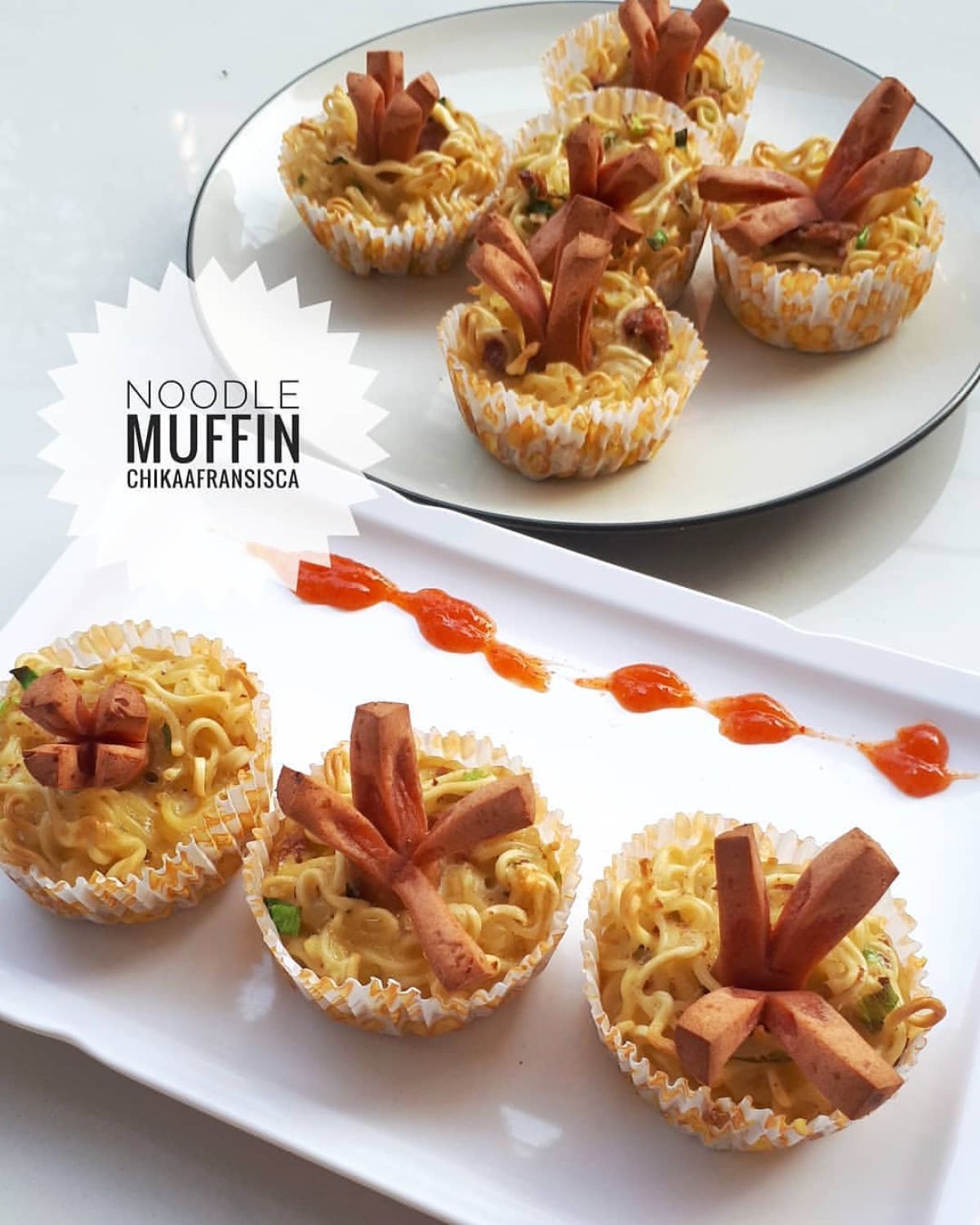 - Angkat dan sajikan muffin mie hangat-hangat, bisa ditambahkan saus sambal atau saus tomat sesuai selera.