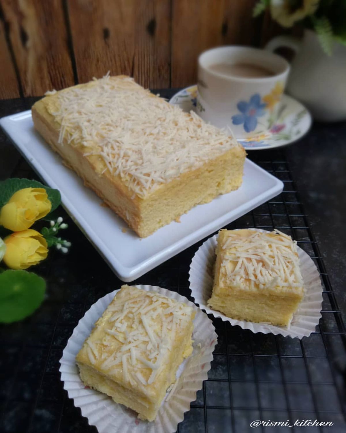 Setelah matang, biarkan bolu dingin sebelum dipotong. Sajikan sebagai teman ngopi atau camilan di sore hari.
