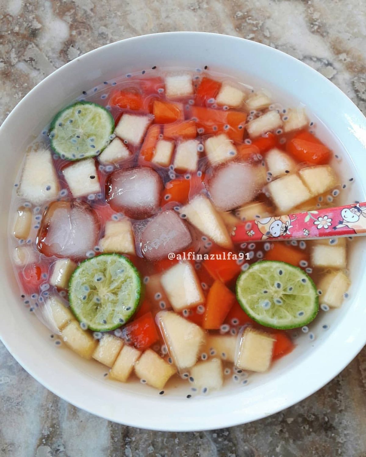 - Tambahkan es batu secukupnya untuk menambah kesegaran.