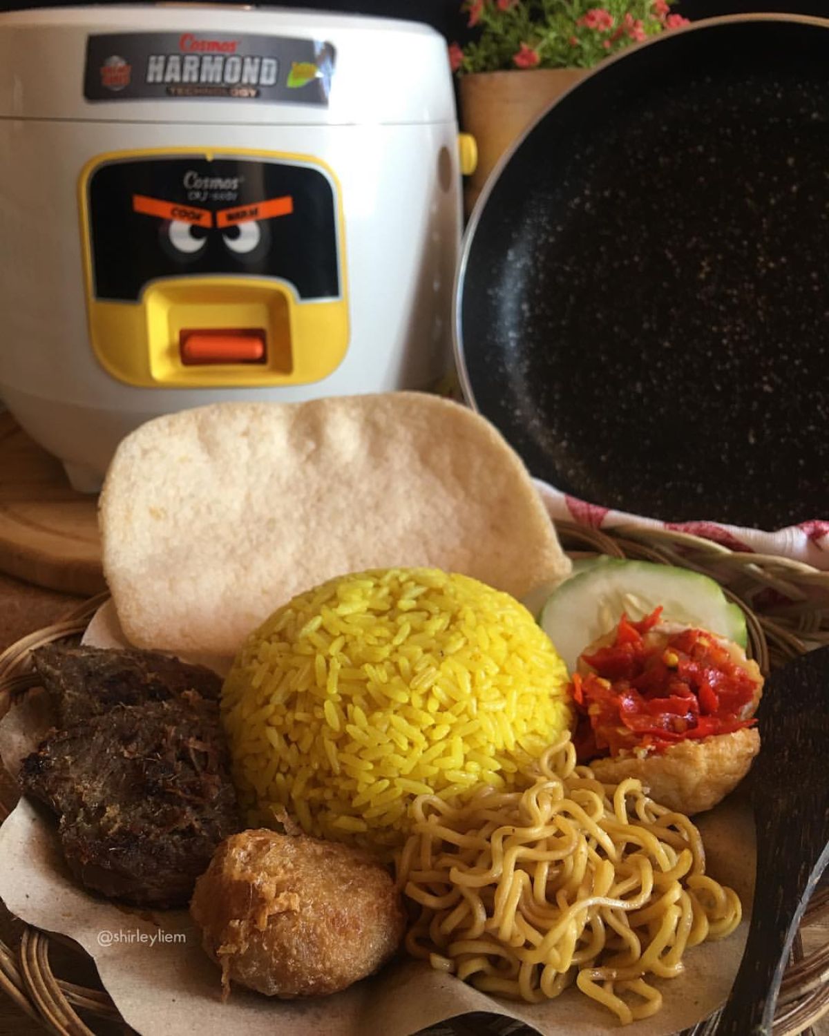 - Setelah nasi kuning matang, angkat dan sajikan hangat bersama pelengkapnya.