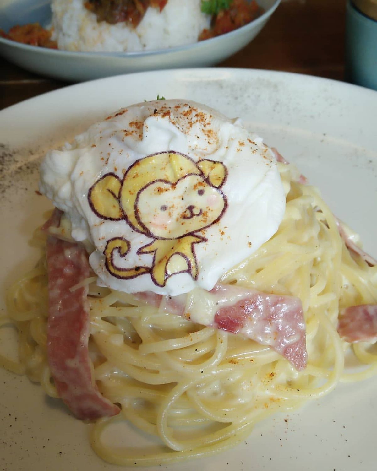 - Sajikan spaghetti di piring dan letakkan telur rebus di atasnya. Tambahkan Edible Stamp bentuk monyet di atas telur, dan sajikan selagi hangat.