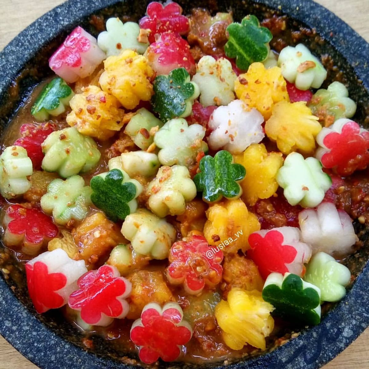 Rujak buah bukan hanya sekedar camilan, tetapi juga mengandung banyak vitamin dari buah-buahan yang sehat untuk tubuh. Kombinasi bumbu pedas, manis, dan asam membuat rujak menjadi salah satu pilihan favorit di banyak daerah di Indonesia. Selamat mencoba dan nikmati kesegaran rujak buah ini!