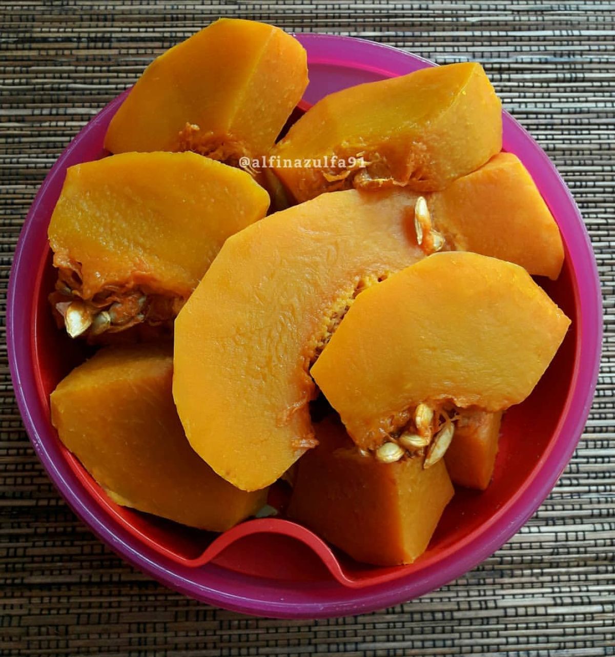 - Siapkan labu kuning yang telah dikukus. Pastikan labu matang sempurna agar mudah dihaluskan.