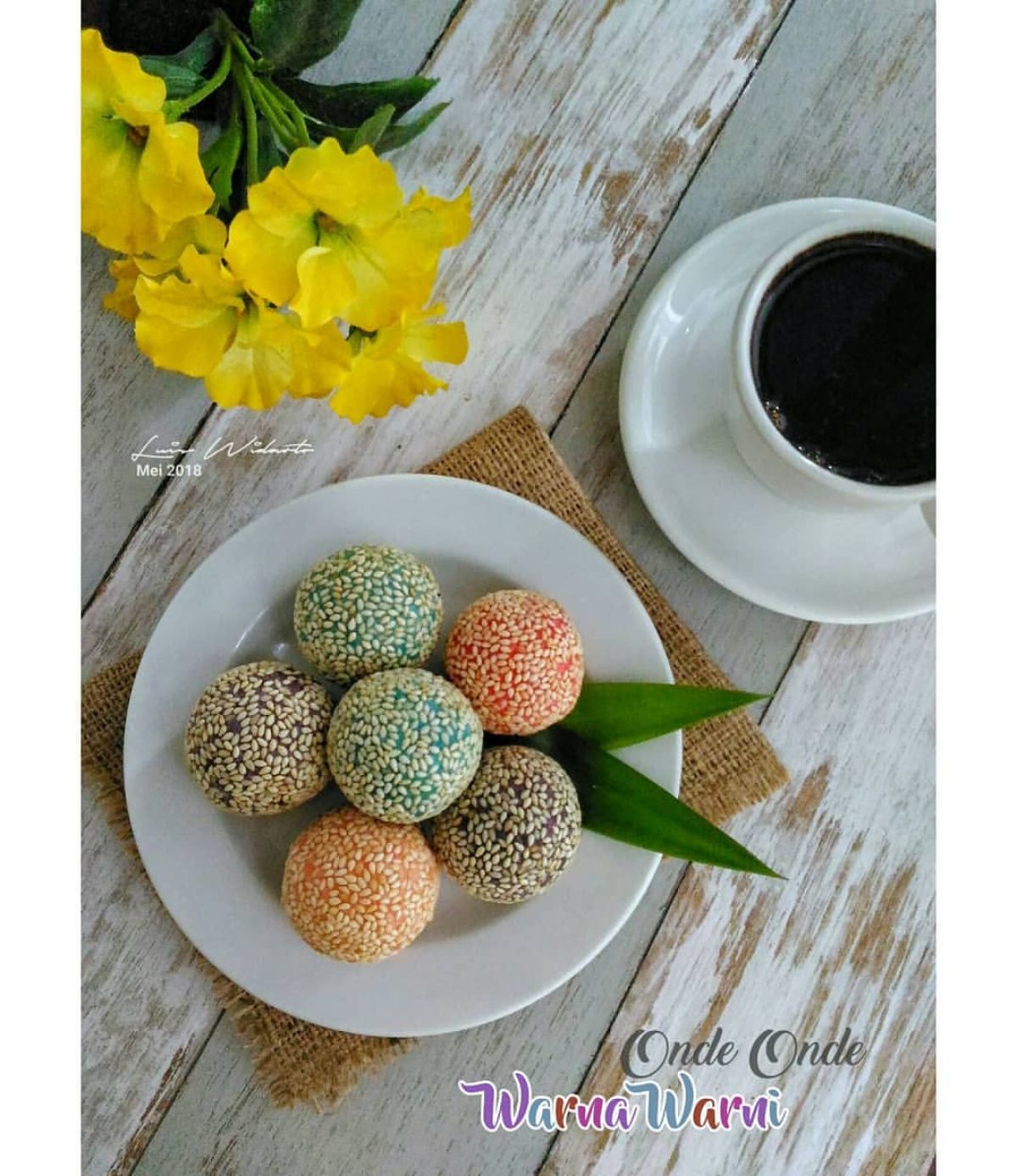 Halo teman-teman! Siapa di sini yang suka ngemil sambil ngopi? Yuk, kita coba bikin onde-onde warna-warni yang enak ini! Onde-onde adalah kue tradisional Indonesia yang biasanya diisi dengan kacang hijau dan ditaburi wijen, sehingga rasanya manis dan gurih. Cocok banget untuk teman saat bersantai. Selamat bereksperimen di dapur! Berikut adalah resepnya: