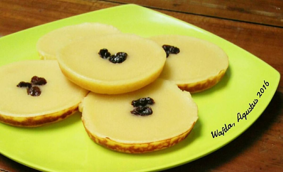 - Panaskan cetakan yang sudah diolesi margarin menggunakan api kecil. Setelah panas, tuang adonan ke dalam cetakan.