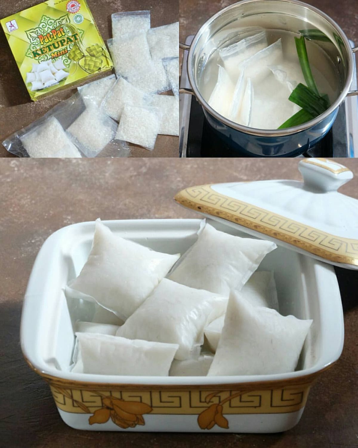 - Cuci kemasan ketupat mini dengan bersih. Pastikan semua kotoran hilang.