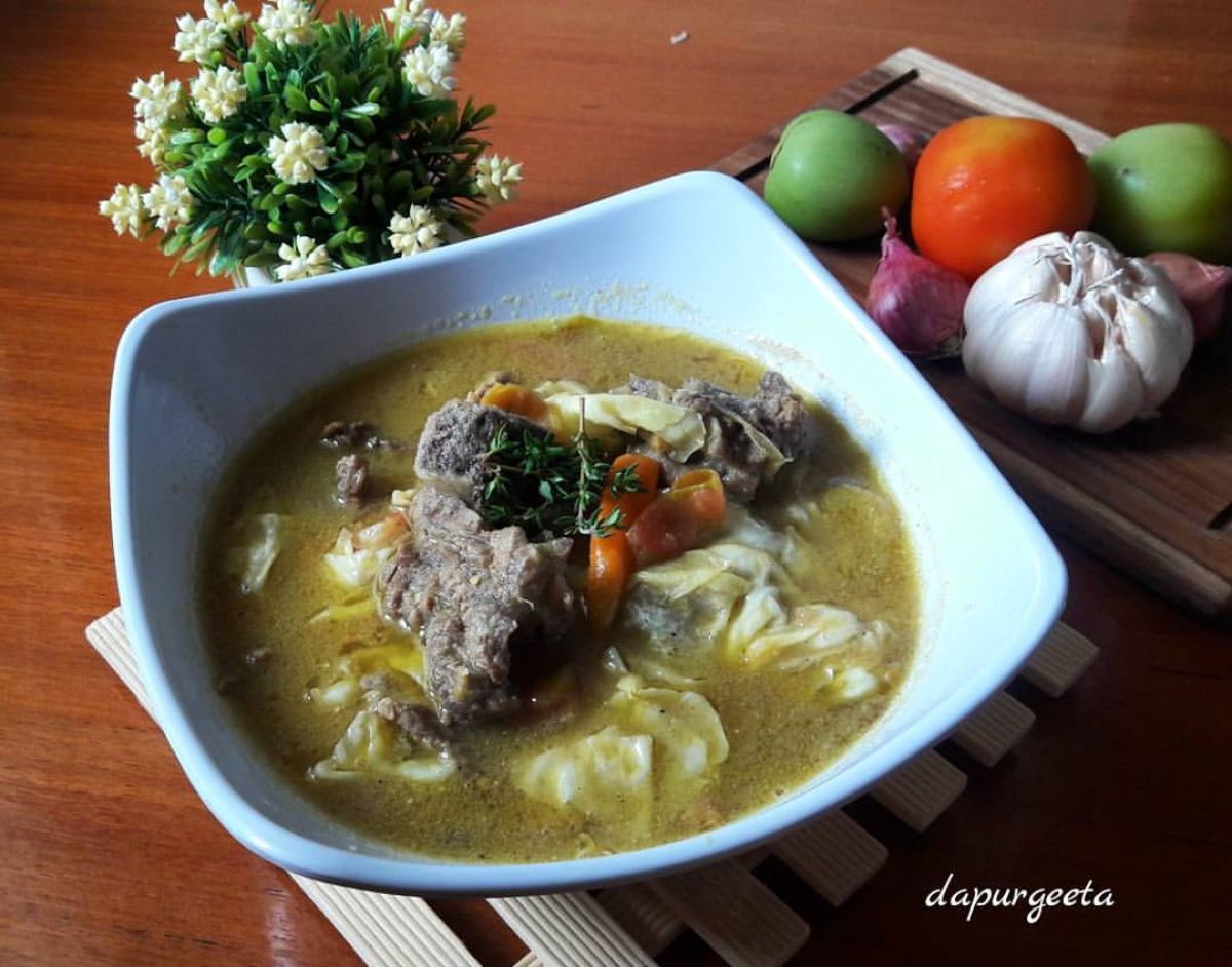 - Rebus daging sapi dan tulang iga hingga empuk. Setelah empuk, angkat dan sisihkan.