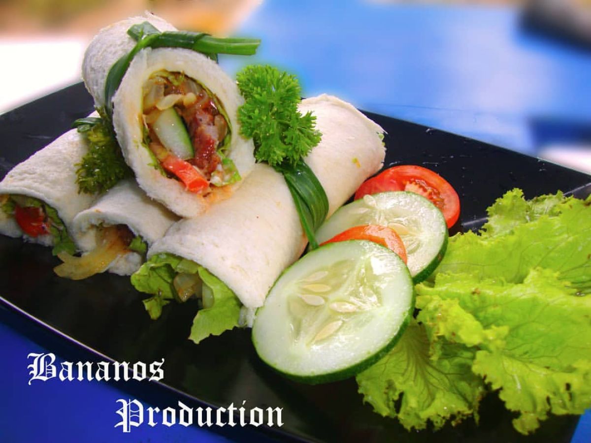 - Gulung dan ikat: Gulung roti dengan semua isian di dalamnya, lalu ikat dengan daun bawang agar sandwich tetap rapat dan tidak terbuka.