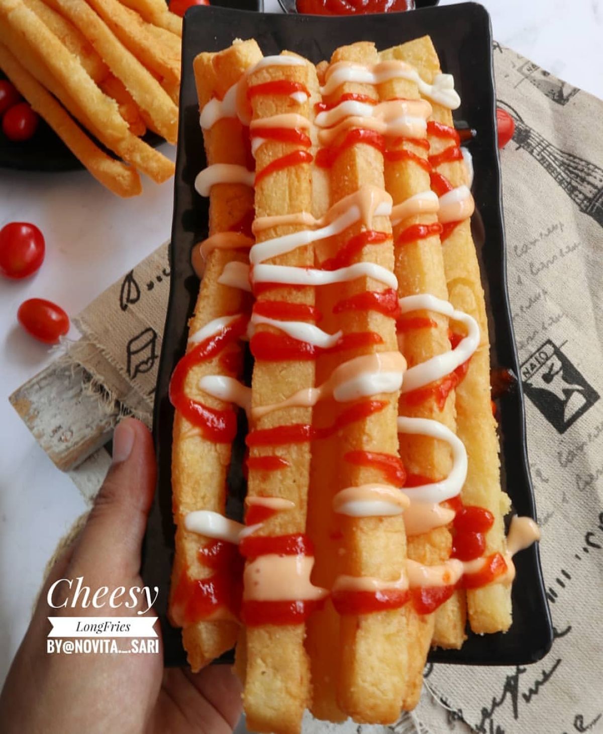 Dengan keju yang meleleh dan kentang yang krispi di luar, cheesy long fries ini bukan hanya enak tetapi juga memberi kita pengalaman makan yang menyenangkan. Selamat mencoba!