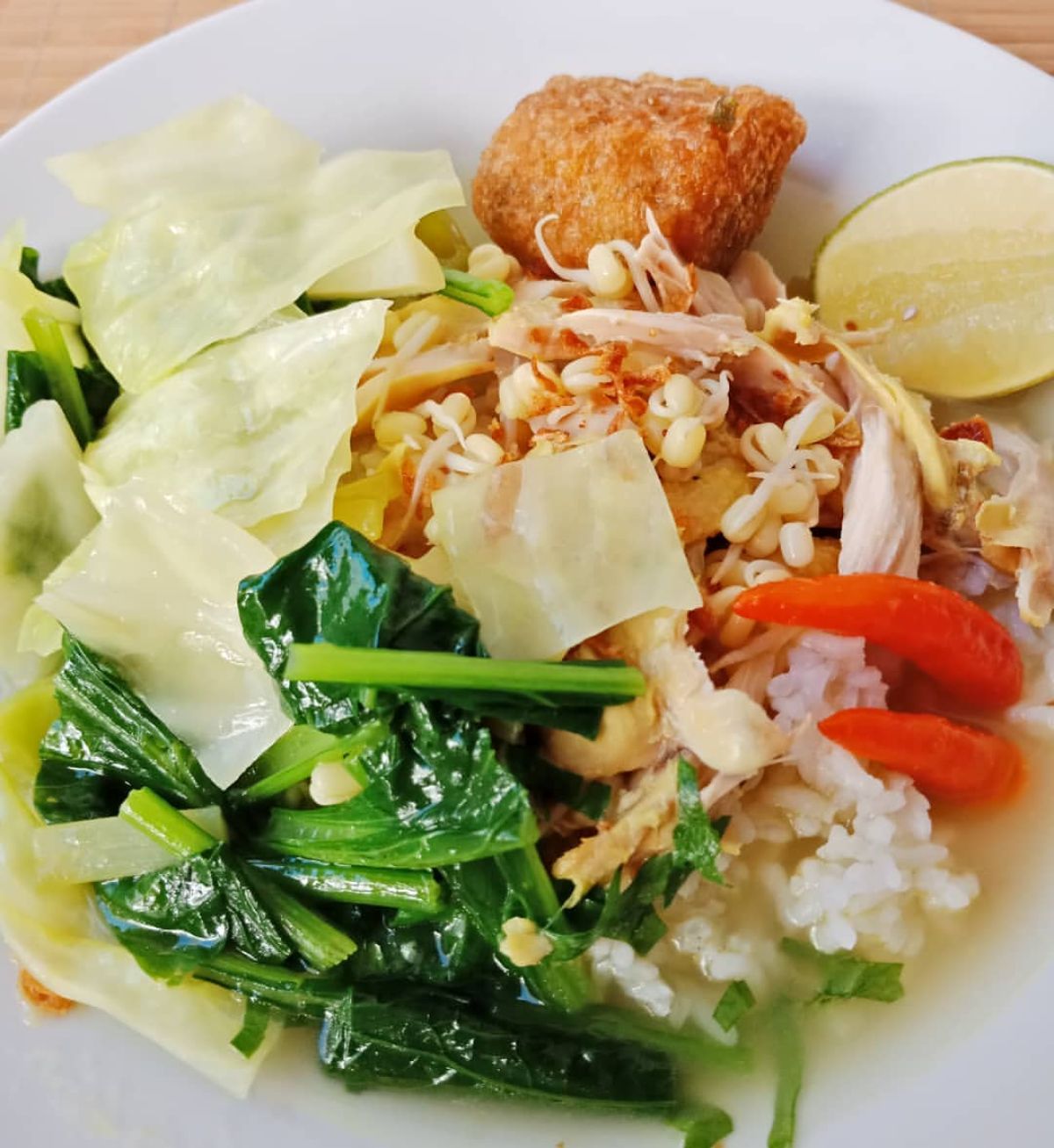 Siram dengan kuah sayur yang panas, beri perasan jeruk nipis yang bikin segar, dan taburi dengan bawang goreng.