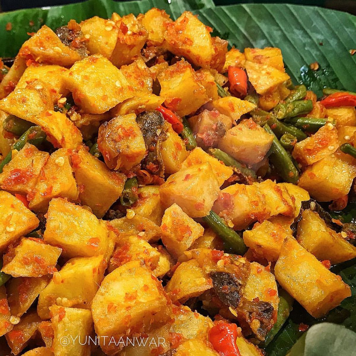 - Setelah bumbu matang, masukkan kentang goreng ke dalam wajan. Aduk rata hingga seluruh kentang terbalut dengan sambal. Masak selama 2-3 menit untuk menghangatkan kentang.