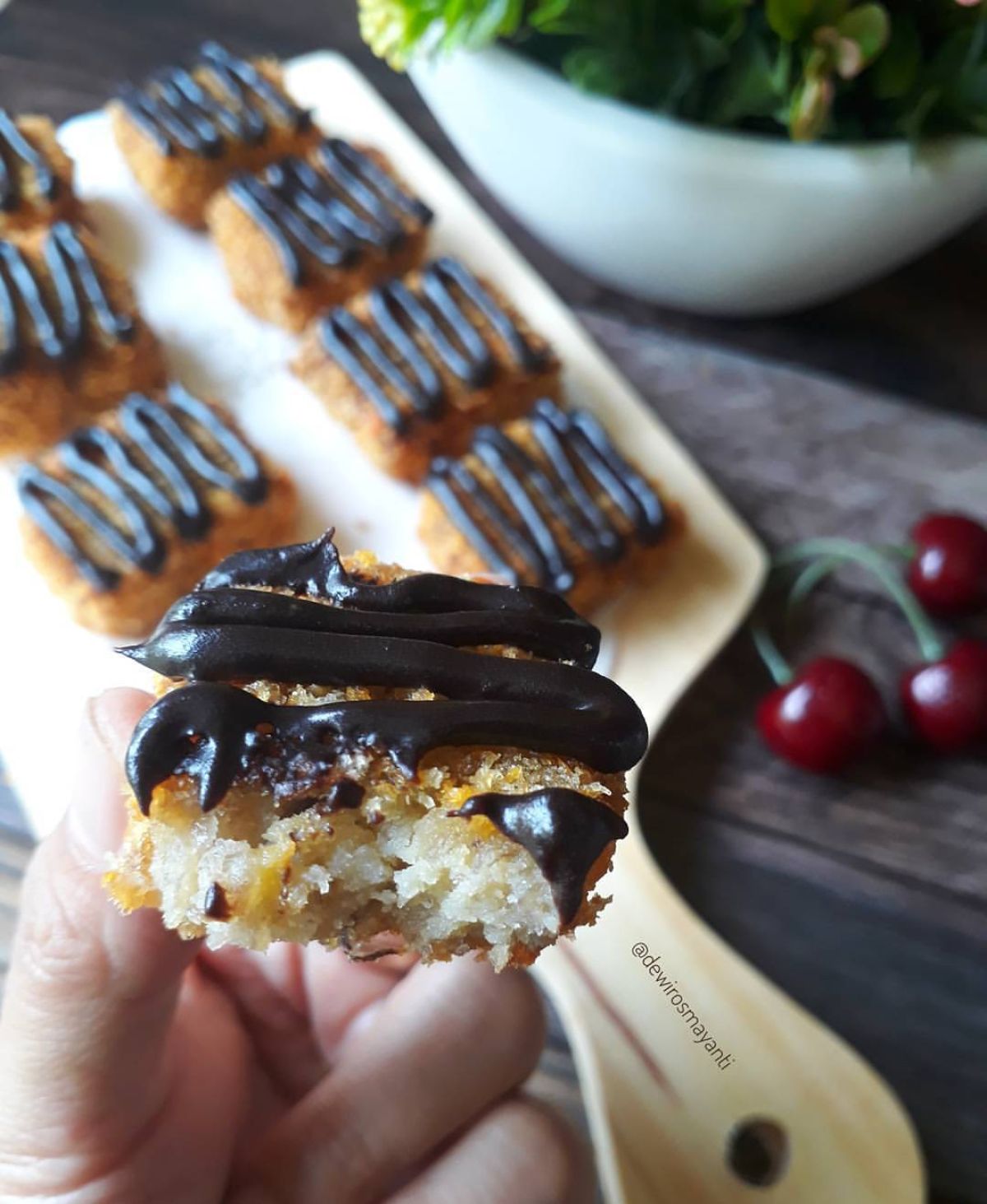 - Campur adonan: Di wadah, campurkan pisang yang sudah dihancurkan dengan tepung terigu, telur, gula pasir, dan baking powder. Aduk rata hingga adonan tercampur dengan baik.