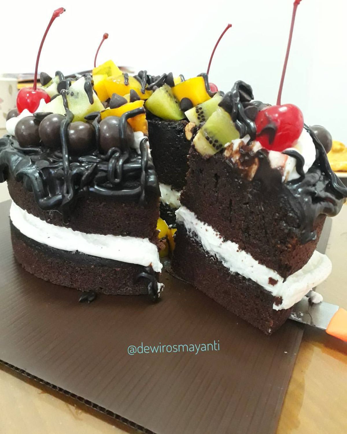 - Akhirnya, hias kue sesuai keinginanmu dengan krim dan ganache. Tambahkan buah-buahan atau hiasan coklat lainnya.