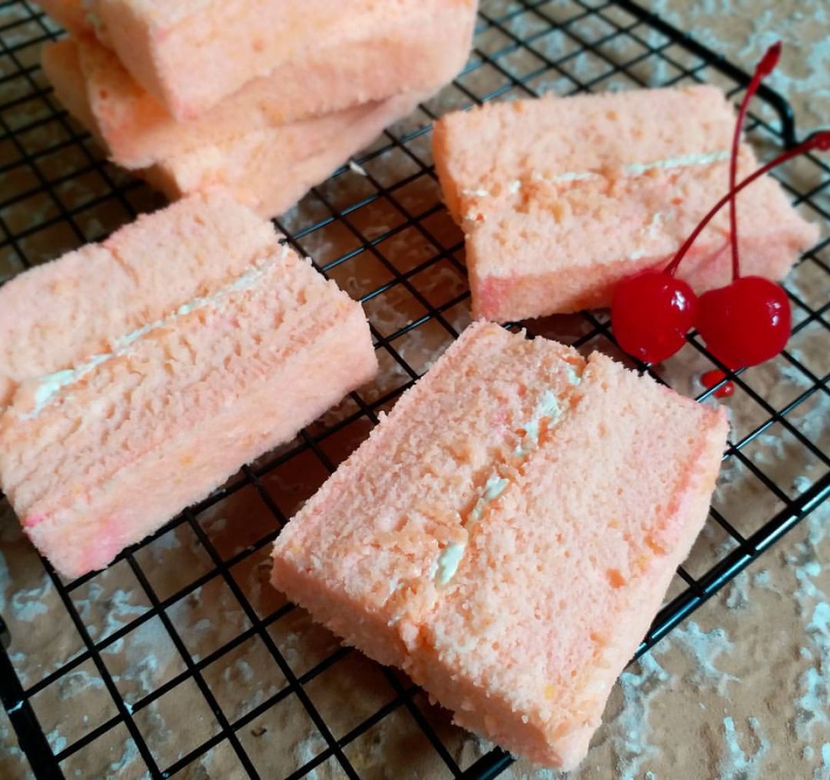 7. Olesi dengan butter cream: Jika kue terasa terlalu keras, kamu bisa mengolesinya dengan butter cream dan menumpuknya menjadi dua lapis. Meskipun bukan gulung yang sempurna, tetaplah nikmat!