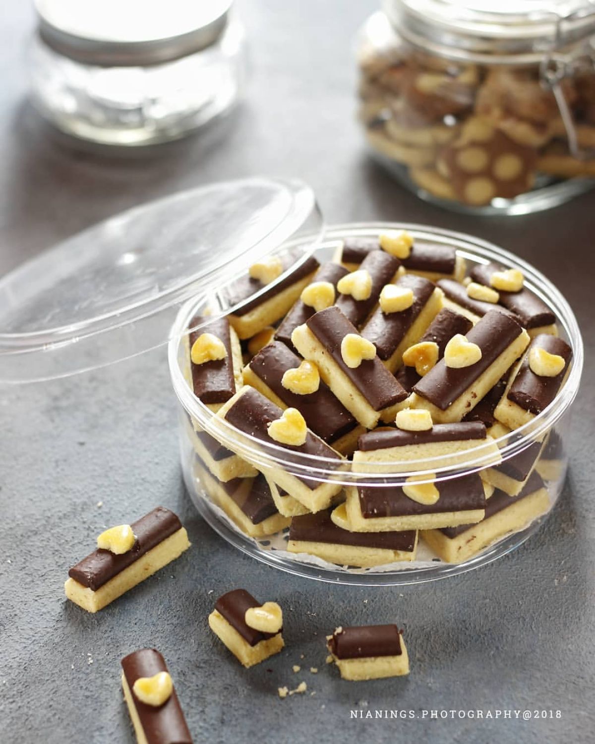 - Susun potongan kukis dalam loyang yang dioles tipis-tipis dengan margarin. Oleskan hiasan love dengan bahan olesan.