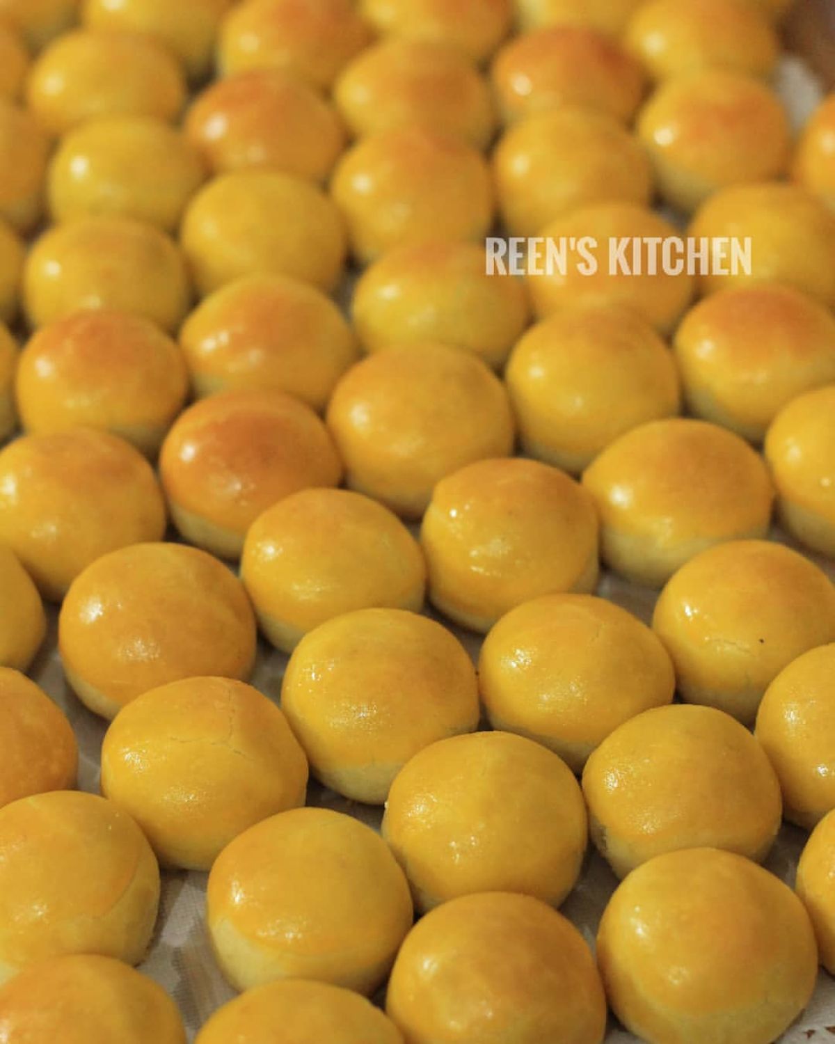 - Diamkan sejenak dan panaskan oven pada suhu 150 derajat Celsius. Setelah oven panas, panggang nastar selama 20-30 menit hingga berwarna keemasan.