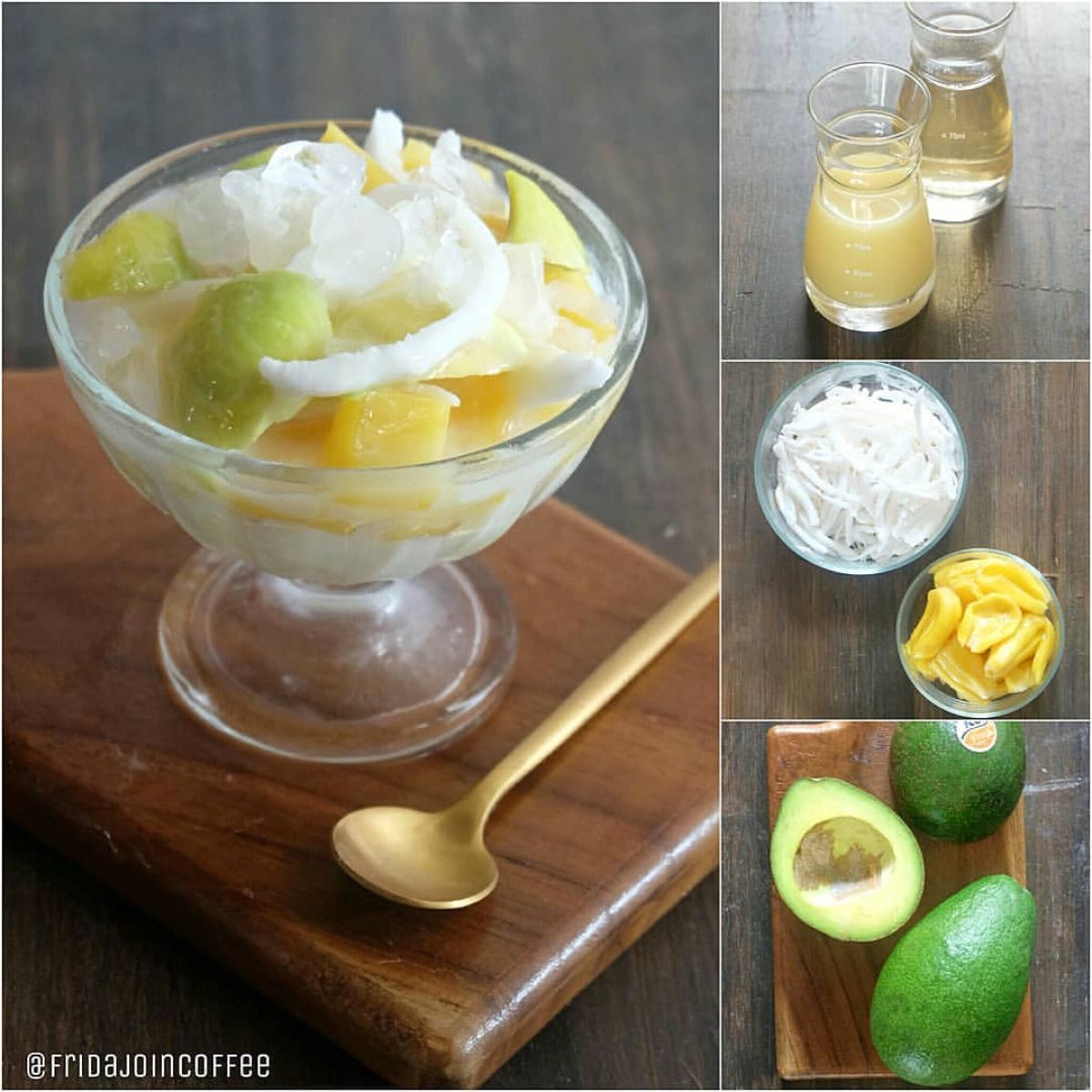 - Tambahkan Buah Lainnya: Setelah kelapa muda, tambahkan potongan nangka dan daging alpukat yang sudah terkeruk. Pastikan semua bahan terdistribusi dengan merata.