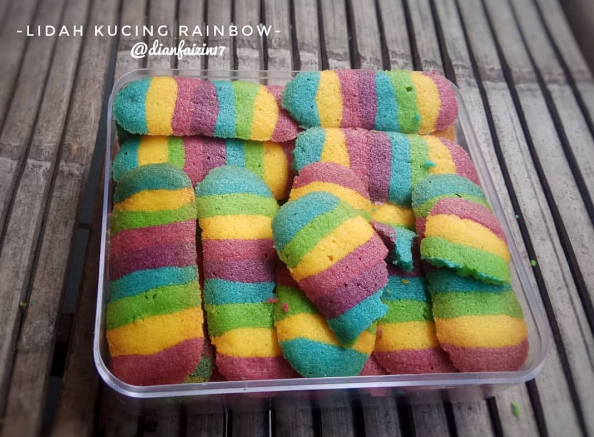 Lidah Kucing ini merupakan kue yang populer di Indonesia. Memiliki bentuk yang ramping seperti lidah, kue ini terkenal karena teksturnya yang renyah dan rasa yang manis. Biasanya, kue ini dipanggang hingga kering dan renyah. Dari waktu ke waktu, variasi Lidah Kucing pun berkembang, termasuk yang menggunakan berbagai macam rasa dan warna, seperti yang kita buat hari ini: Lidah Kucing Rainbow!