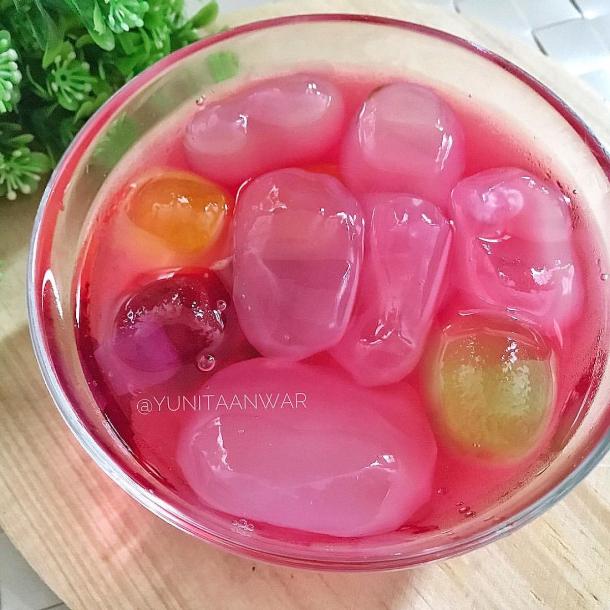 - Setelah itu, campurkan potongan lontar dan jelly dalam sebuah wadah besar.