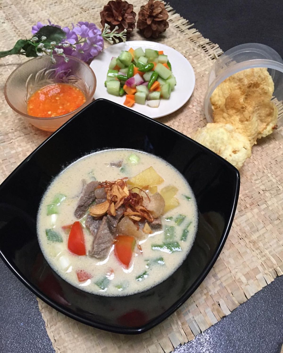 - Sajikan soto Betawi ini dengan sambal, emping, dan acar timun untuk menambah kenikmatannya!