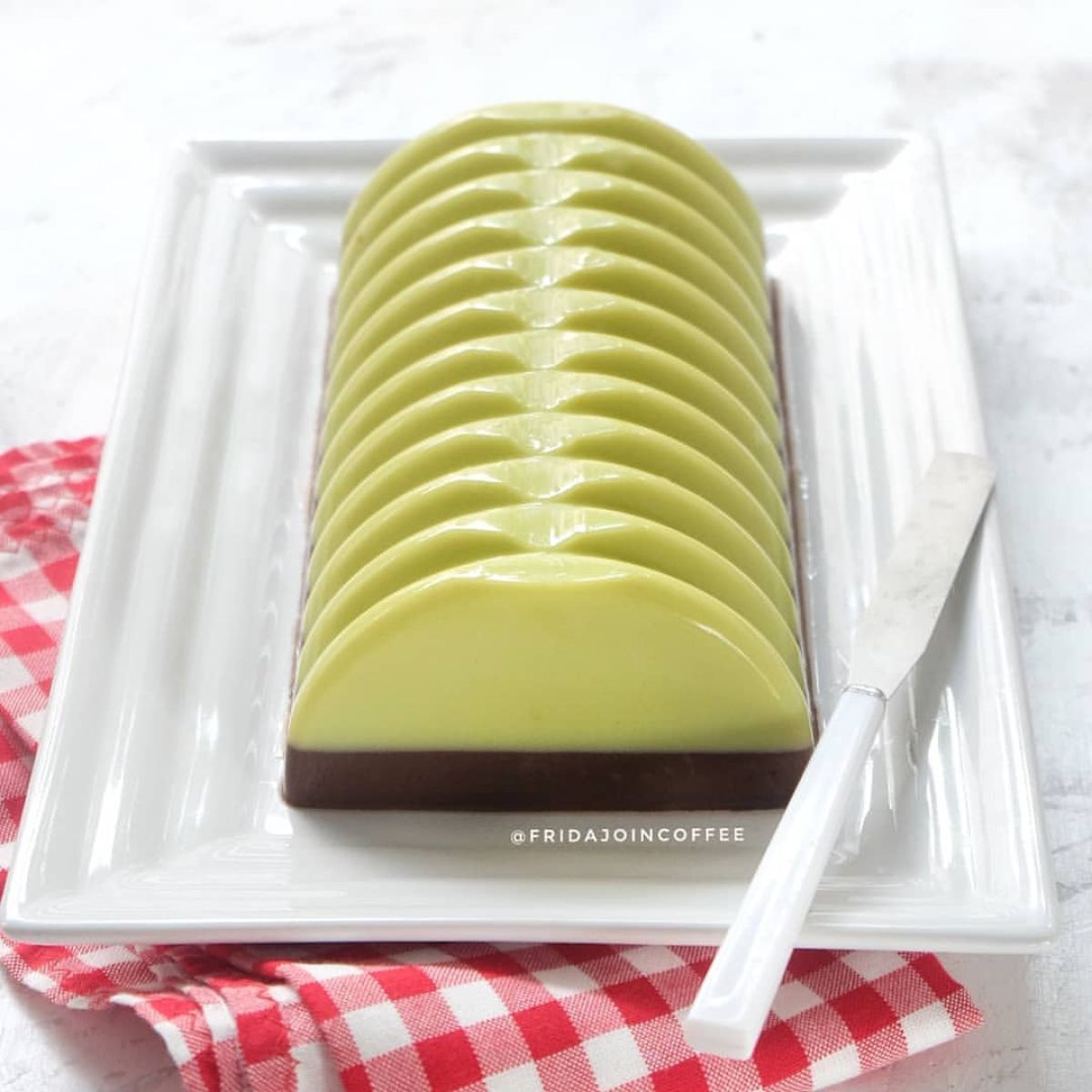 - Dengan hati-hati, tuang puding coklat di atas puding alpukat yang sudah setengah beku. Gunakan sendok sayur untuk menuangnya sedikit demi sedikit agar tidak tercampur.