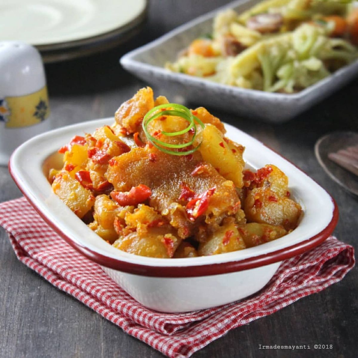 Selamat menikmati Sambal Goreng Kentang Krecek! Hidangan ini berasal dari tradisi masakan Indonesia yang kaya bumbu dan cita rasa. Kentang adalah sumber karbohidrat yang baik, sementara krecek menambah tekstur dan rasa yang unik. Sajian ini biasanya dinikmati saat berbuka puasa, memberikan kelezatan yang dapat memuaskan selera setelah seharian berpuasa!
