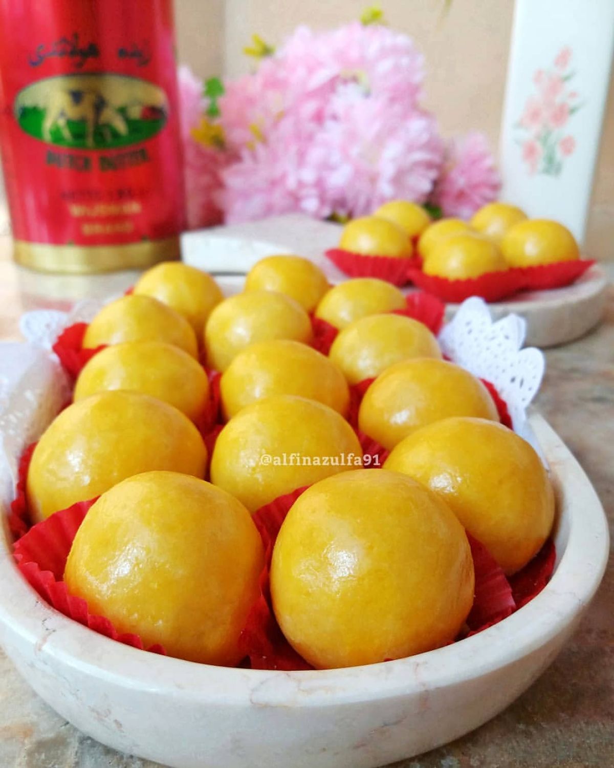 - Letakkan nastar yang sudah dibentuk di atas loyang yang telah diolesi mentega atau dialasi kertas roti.