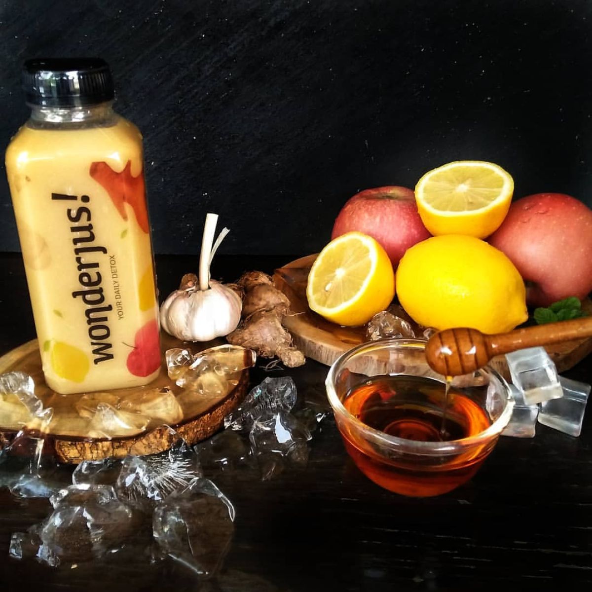 Bawang putih tunggal dikenal dapat meningkatkan daya tahan tubuh dan membantu mengurangi kolesterol. Jahe merah juga bermanfaat untuk mengatasi masalah pencernaan dan memiliki sifat anti-inflamasi. Lemon kaya vitamin C yang baik untuk kulit dan meningkatkan sistem imun. Cuka apel dapat membantu melancarkan pencernaan dan menjaga metabolisme tubuh.