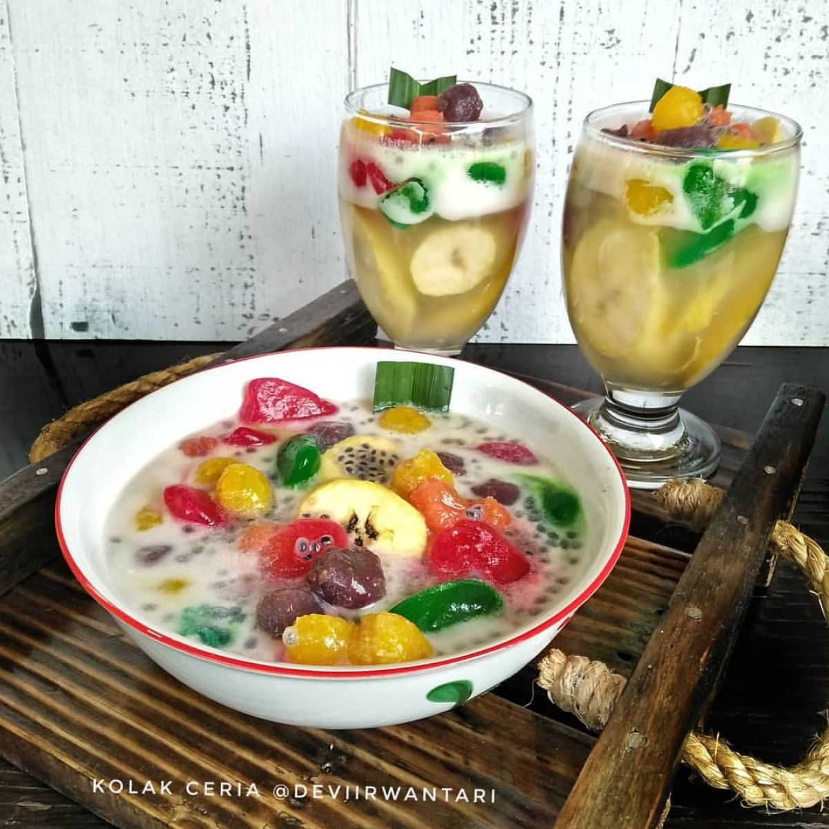 - Sajikan: Kolak ceria siap disantap! Tuang kolak dalam mangkuk atau gelas saji, dan taburkan biji selasih di atasnya untuk menambah kesan cantik dan segar.
