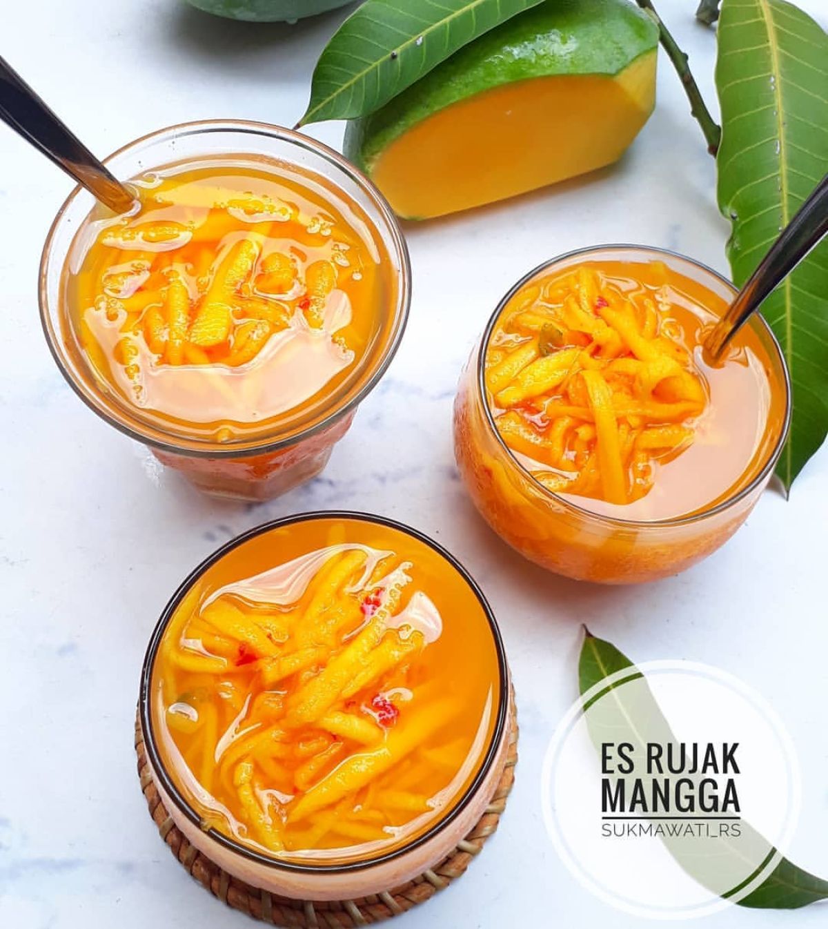 Rujak mangga menjadi salah satu favorit karena menggabungkan rasa asam dari mangga yang belum matang dengan manisnya sirup jeruk dan pedasnya cabe. Ketika dihidangkan, es rujak ini sangat populer saat berbuka puasa, karena memberikan kesegaran yang dibutuhkan setelah seharian berpuasa.