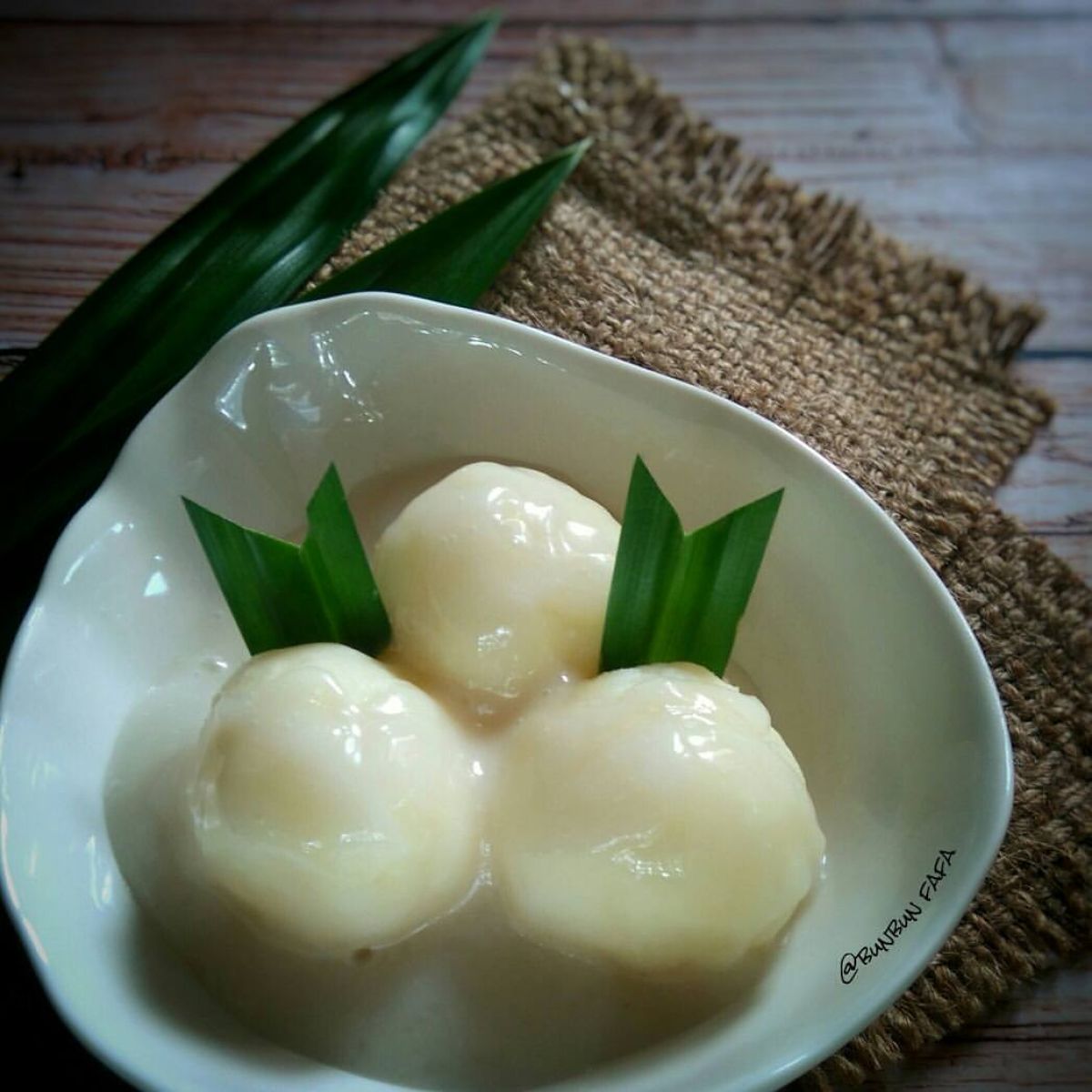 - Siapkan piring atau mangkuk saji. Bentuk adonan singkong menjadi bulatan lonjong sebesar telur ayam. Tata di mangkuk, lalu siram dengan saus yang telah dibuat.
