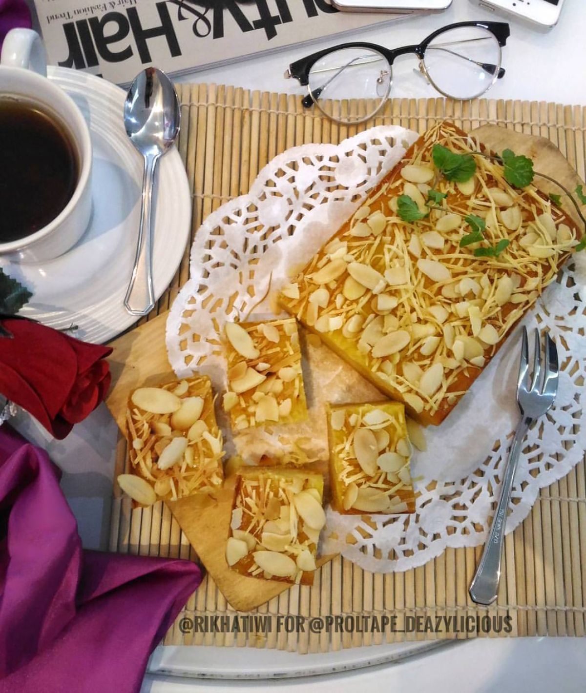 6. Dinginkan dan Hidangkan: Setelah matang, angkat loyang dari oven dan biarkan hingga dingin. Setelah itu, potong-potong proll tape sesuai selera. Proll tape keju almond siap untuk dinikmati! Jangan kaget jika satu potong saja tidak cukup, karena rasanya yang legit dan manis!