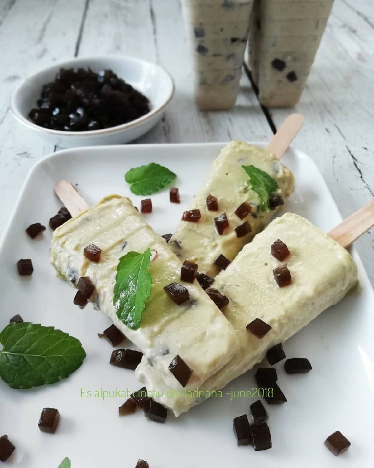 Setelah beku, es alpukat cincau siap dinikmati! Potong cetakan es, sajikan dalam mangkuk, dan nikmati sensasi dingin yang lembut.