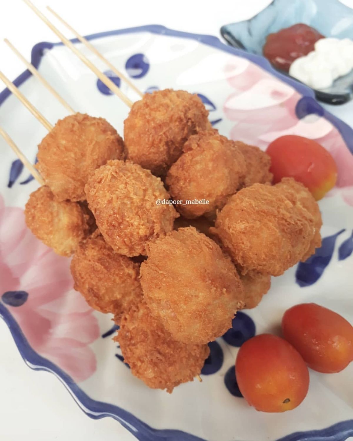 - Sajikan: Angkat bola-bola yang sudah matang dan tiriskan. Sajikan hangat dengan saus sambal dan mayonaise untuk tambahan rasa yang lebih nikmat.
