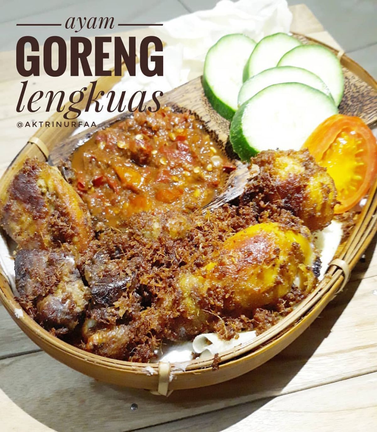 - Angkat ayam dan taburi dengan bumbu lengkuas goreng. Sajikan dengan sambal dan lalapan segar.