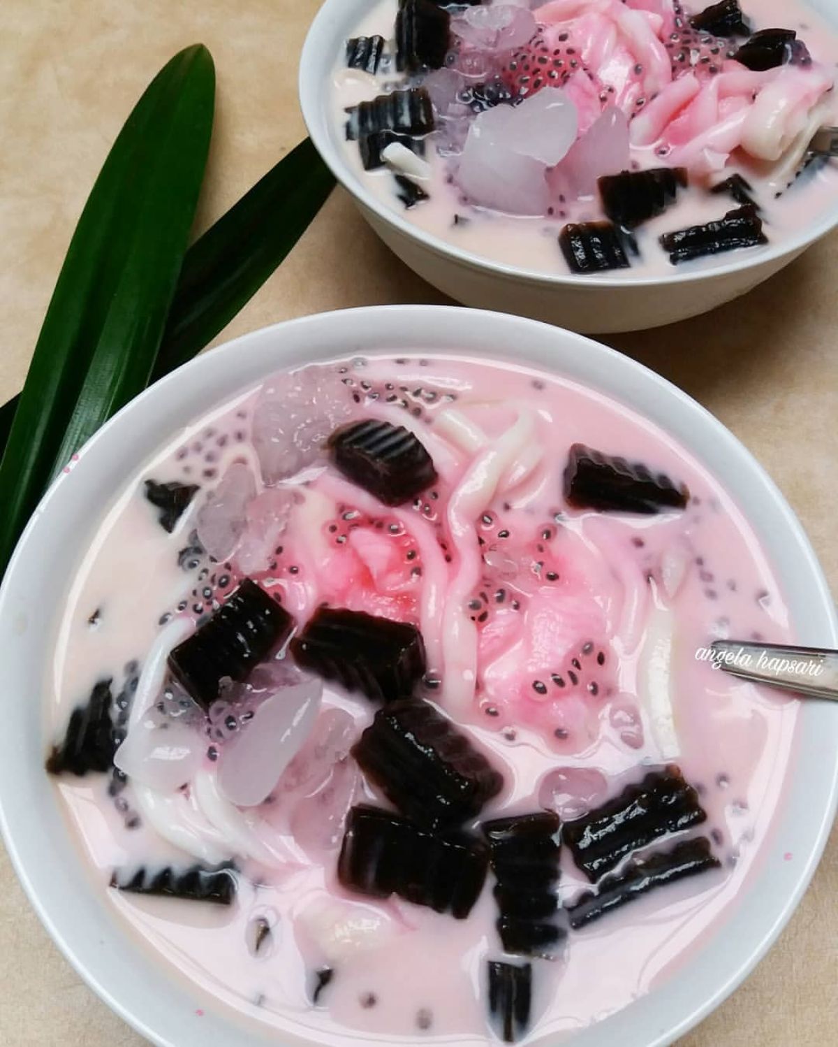 - 1 sdm biji selasih, direndam hingga mekar dan tiriskan