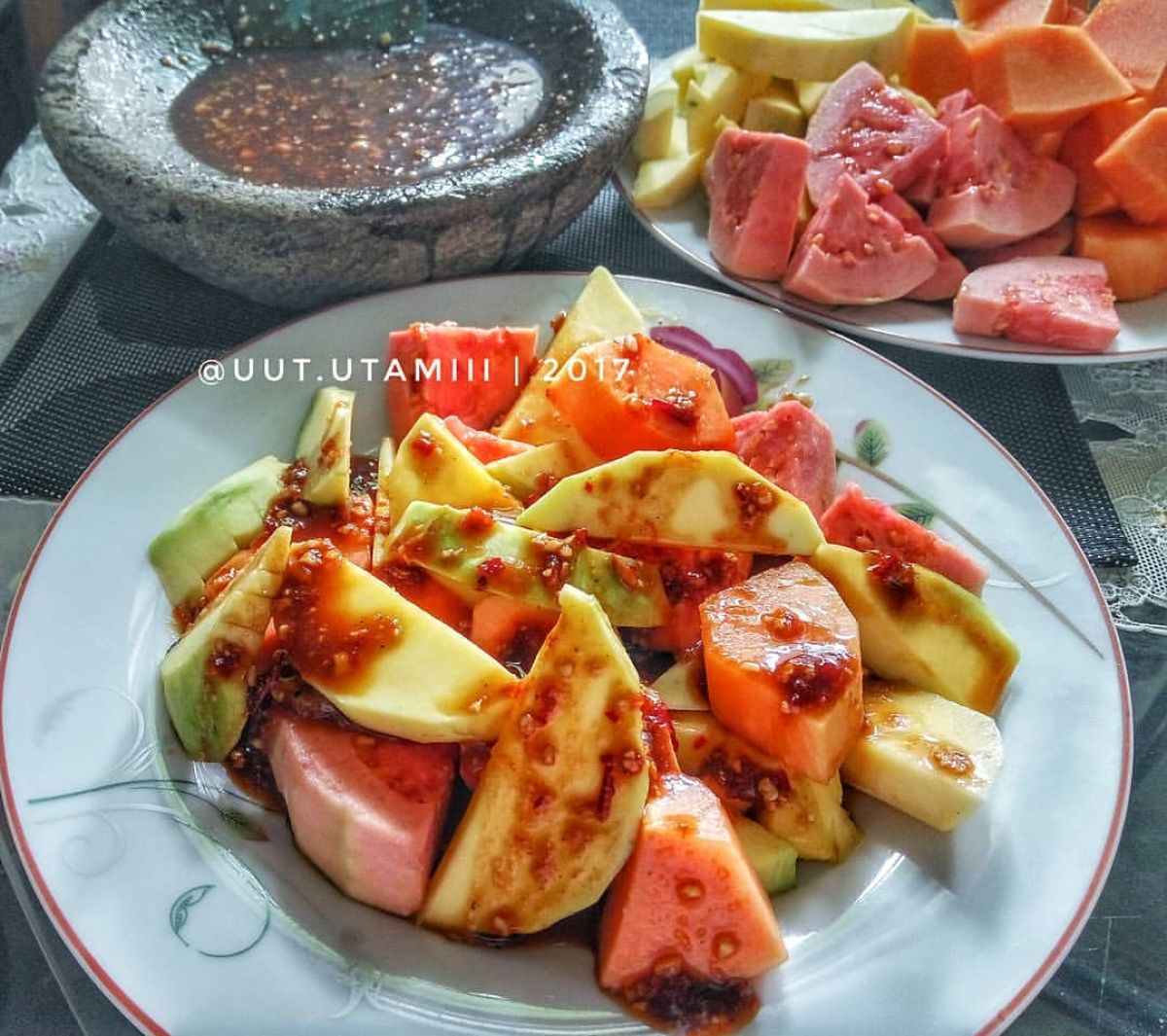 Sambel rujak kacang mete siap untuk disajikan! Hidangkan dengan irisan buah-buahan segar seperti mangga, kedondong, atau nanas untuk menikmati kombinasi rasa yang sempurna. Selamat menikmati!